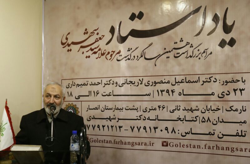 منصوری لاریجانی در پایان گفت: اگر کسی آثار ایشان را با دقت مطالعه کند این شگفتیها را در آثار وی میبیند. متاسفانه افرادی مانند مرحوم شهیدی و علامه طباطبایی در جامعه شناخته شده نیستند.