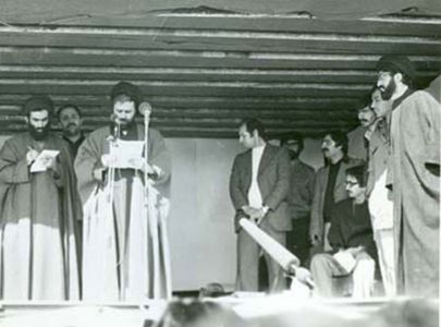 دکتر بنی صدر (پس از انتخاب)، سید احمد خمینی ، استاد سید هادی خسروشاهی ، سید هادی مدرسی، (تهران)